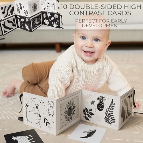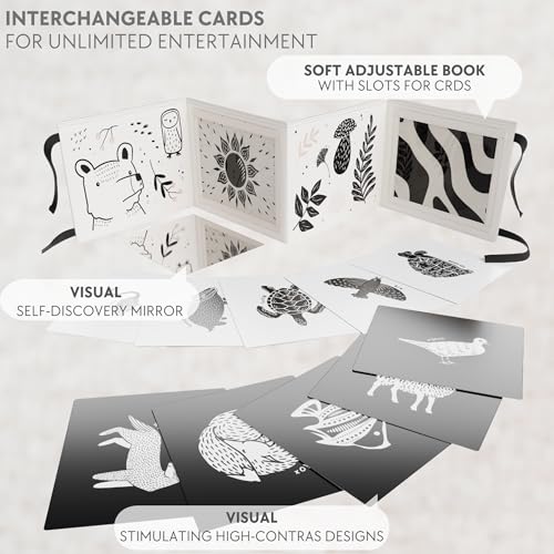 Interchangeable Designs – Extra Entertainment & Value: ZICOTOs’ baby tummy time toys encourage curiosity for a long time! The booklet contains 10 cards with 20 cute, captivating animal illustrations, the perfect high contrast baby toys for newborns & toddlers