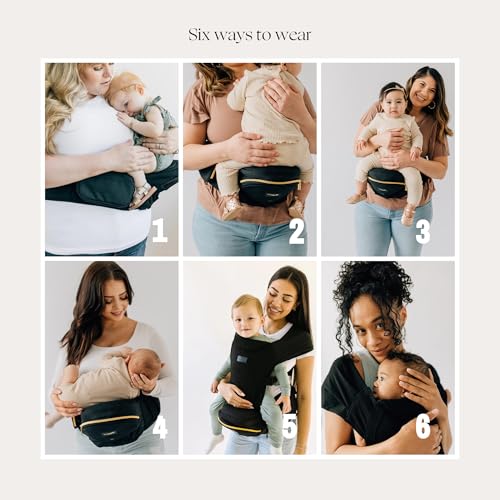 TushBaby Safety-Certified Hip Carrier for Babies & Toddlers: Machine Washable Child Waist Seat for One Hand Support with Multi-Pocket Storage (23”-44” Waist, Holds Kids 0-3 yrs up to 45lbs) – Black