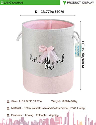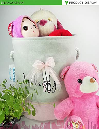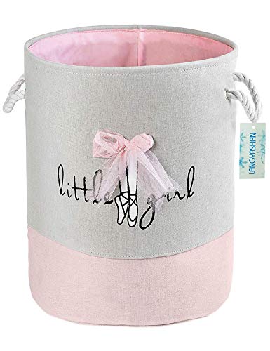 LANGYASHAN Laundry Basket Canvas Collapsible Organizer Storage Basket for Boys Girls Laundry Hamper Toy Bins Gift Baskets Bedroom Clothes Children Nursery (Pink Lace)