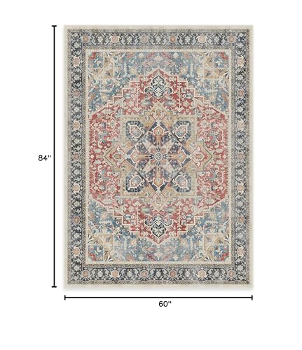 Ruggable Washable 5×7 Area Rug, Kamran Cayenne Red, Premium Vintage Rugs for Living Room, Bedroom, Kitchen, Office, Classroom with Gripper Non Slip Pad